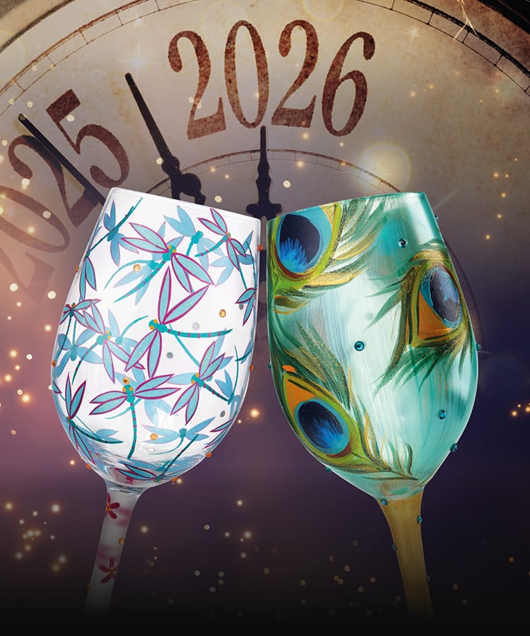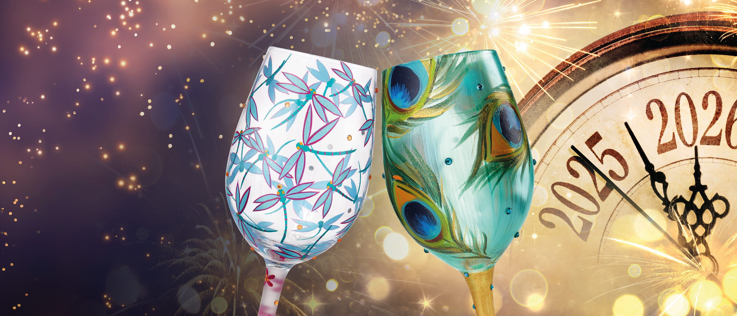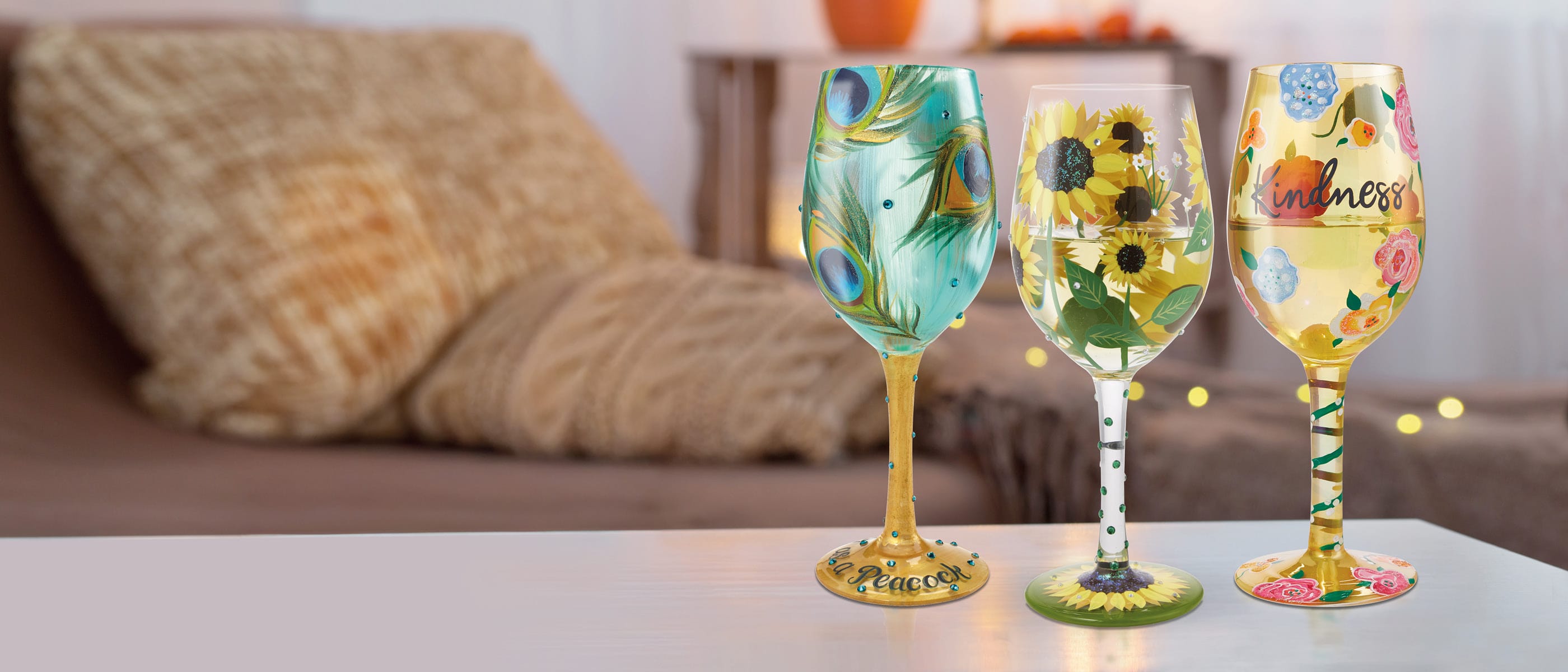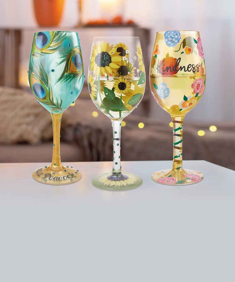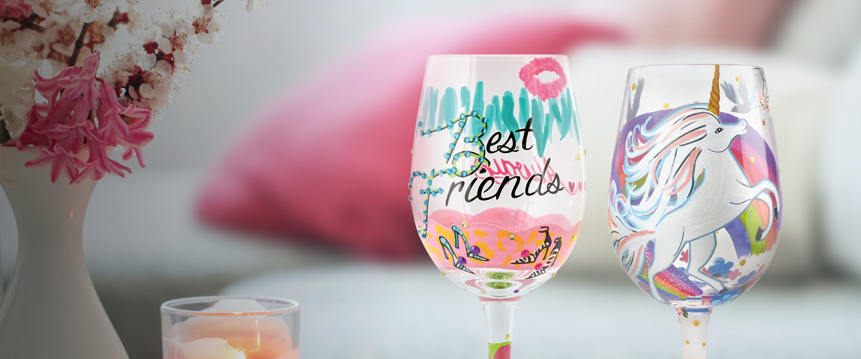 Lolita - hand-painted and gift packaged wine and gin glasses.
