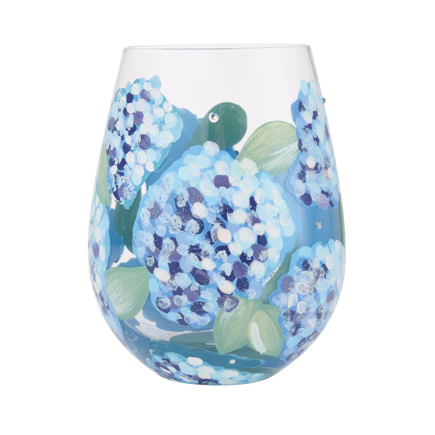 Elevate your inventory with this unique, hand-painted stemless glass, featuring a lush, impressionistic blue and teal hydrangea. Each piece offers high-end artisan quality, ideal for consumers who are actively seeking gifts for Mother's Day, wedding season or housewarmings. This versatile glass ensures strong year-round appeal, helping you position this functional piece of art as amust-have item in your gift store